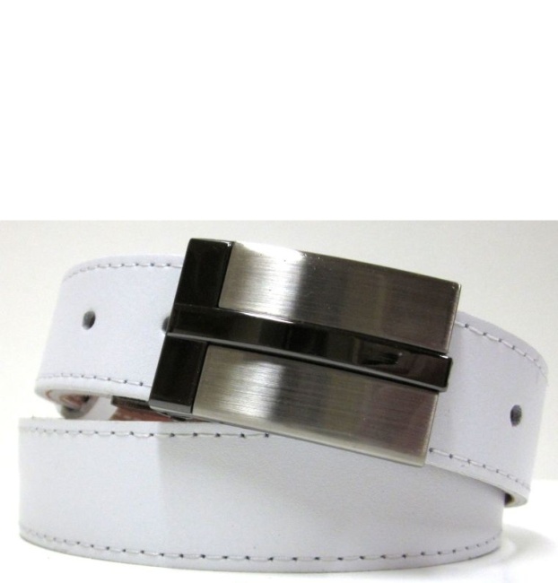 - elegatný kožený opasok s malou celokovovou kovovou sponou v bielej farbe určený na elegantné nosenie