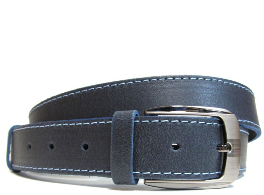 Modrý kožený opasok klasický - 3,5 cm opasok z modrej hovädzej kože - opasok s prackou v tmavšej striebornej farbe - možnosť výberu rôznych farieb kože E-shop Kozene-opasky.sk – online predaj opaskov z kože celý popis