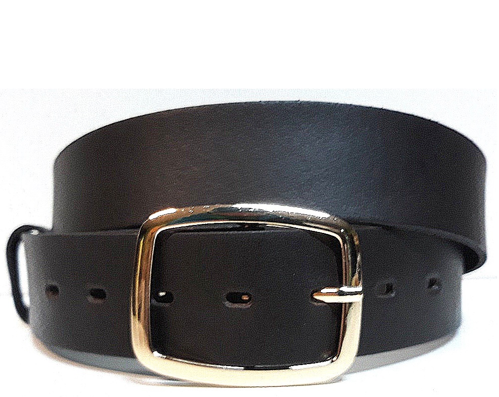 Elegantný kožený opasok s prackou v zlatej farbe. - opasok z čiernej hovädzej kože s klasickou prackou - šírka kože na opasku 3,8 cm, určený do elegantných nohavíc - opasok so zlatou kovovou sponou E-shop Kozene-opasky.sk – opasky online celý popis