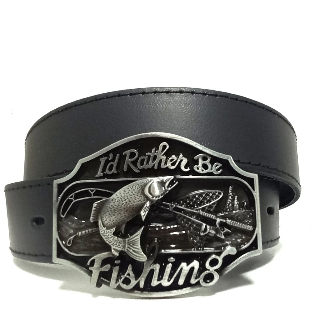 - čierny opasok z hovädzej kože s väčšou prackou s rybárskym motívom