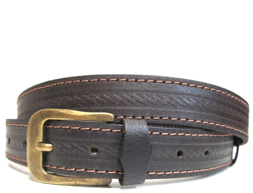 - úzky tmavohnedý opasok z hovädzej kože s potlačeným vzorom, staromosadznou prackou určený do elegantných nohavíc